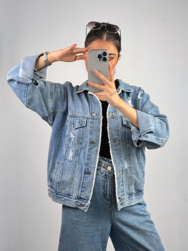 کاپشن جین زنانه خارجی خز دار ۲۲۴