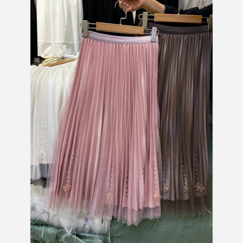 دامن حریرپلیسه استر دار خارجی زنانه قد 88 دامن10گل گلی