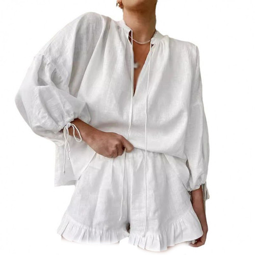 ست بیرونی زنانه خارجی شومیز گره ای شلوار تاپ