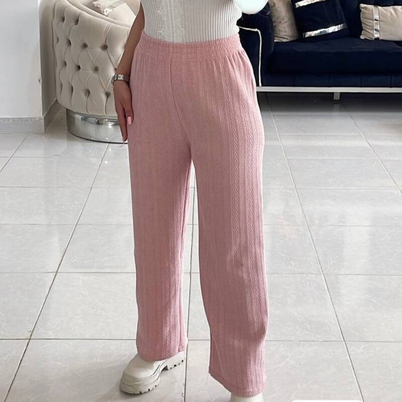 شلوار بافت برجسته خارجی زنانه و دخترانه کمرکش فری تا48