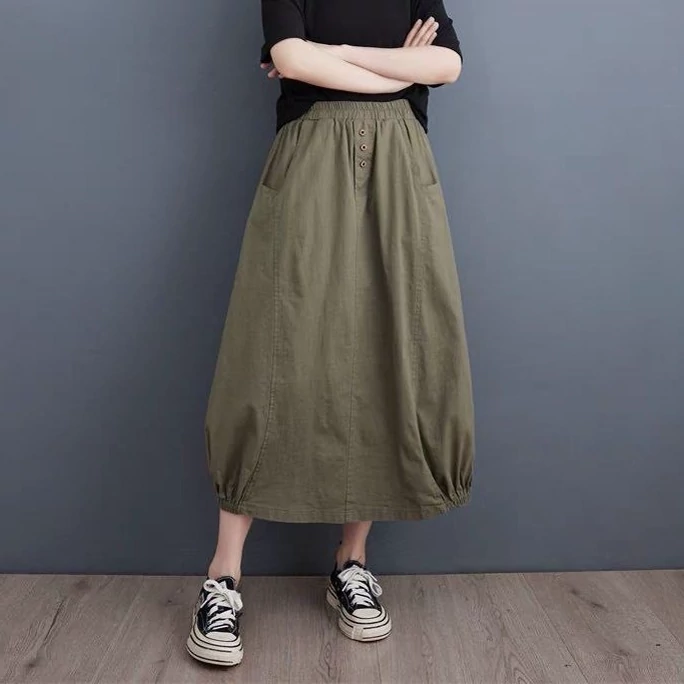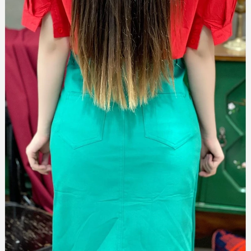 دامن کتان خارجی زنانه دخترانه سبز