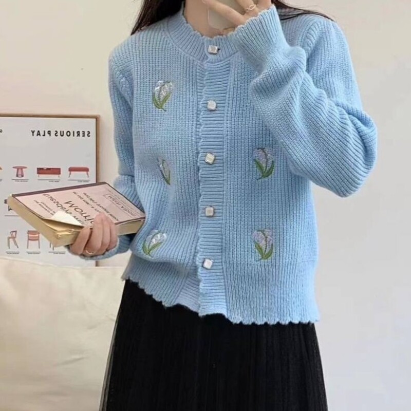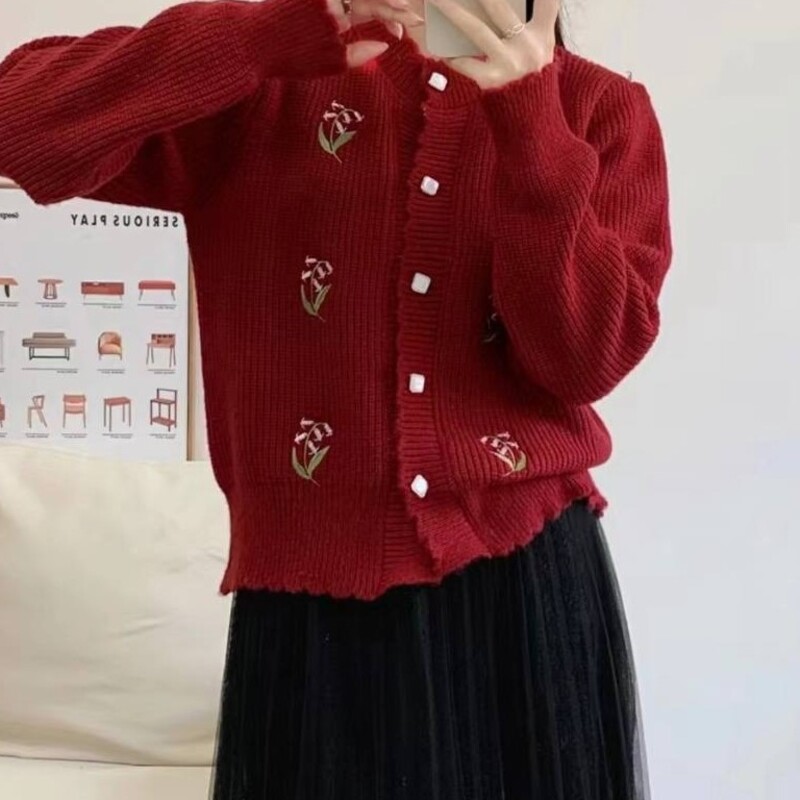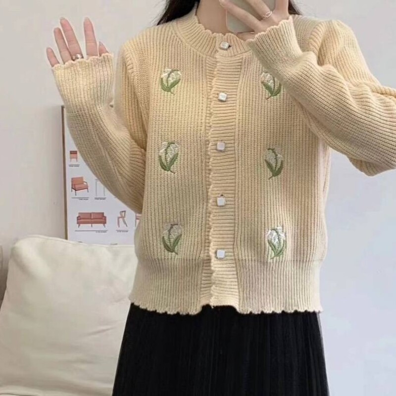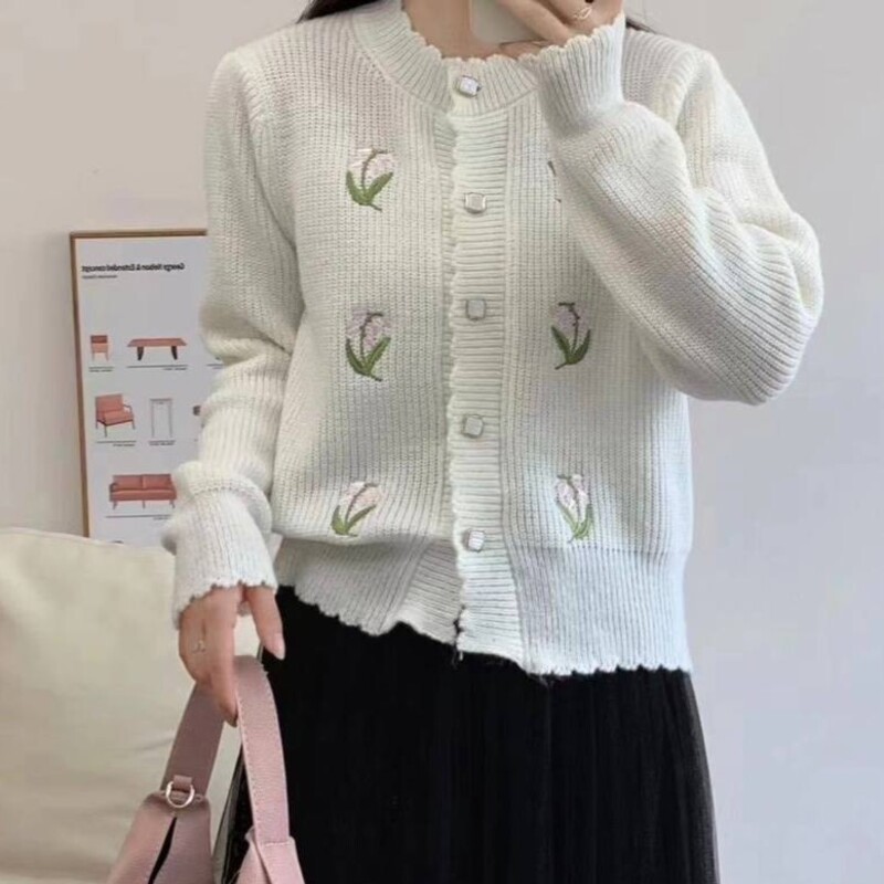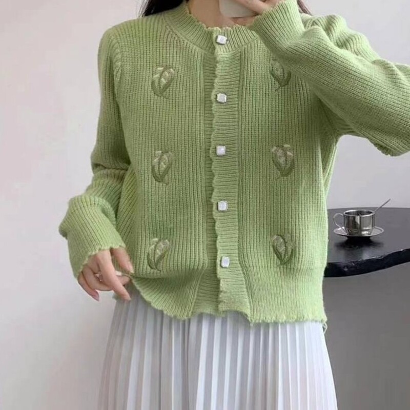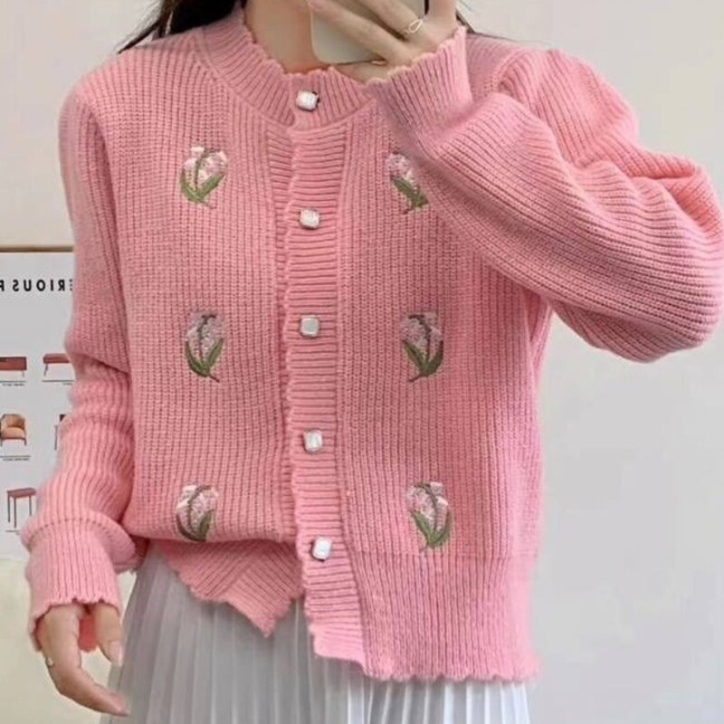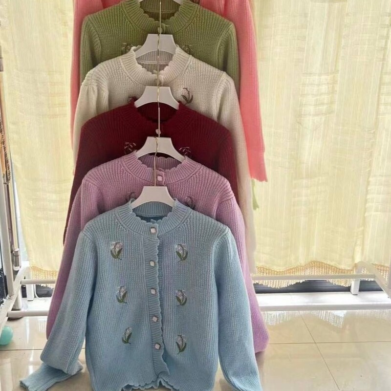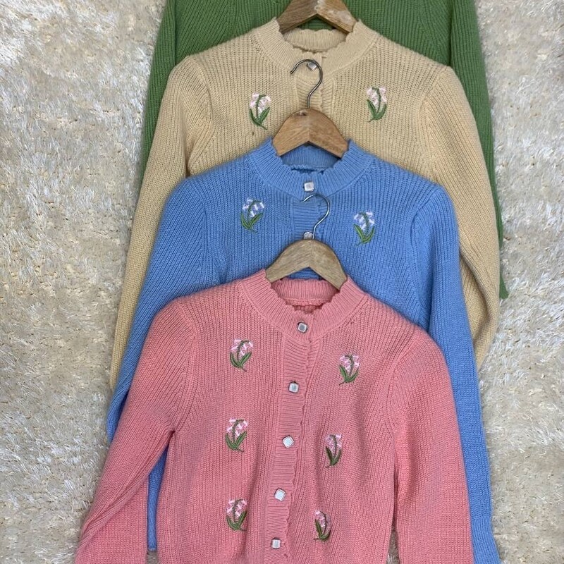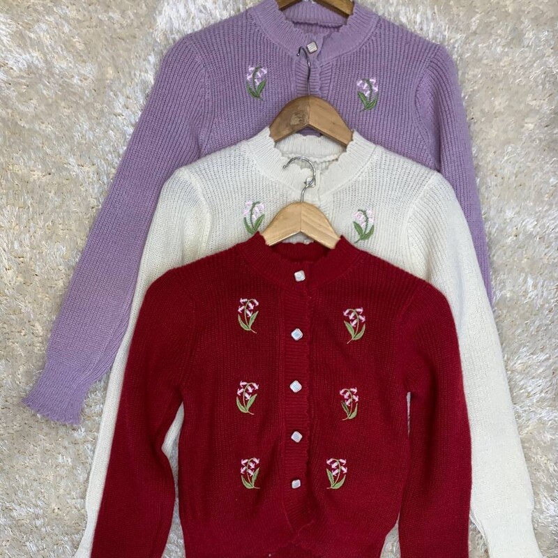 ژاکت بافت دکمه دار طرح گل خارجی زنانه و دخترانه رویه بافت کراپی