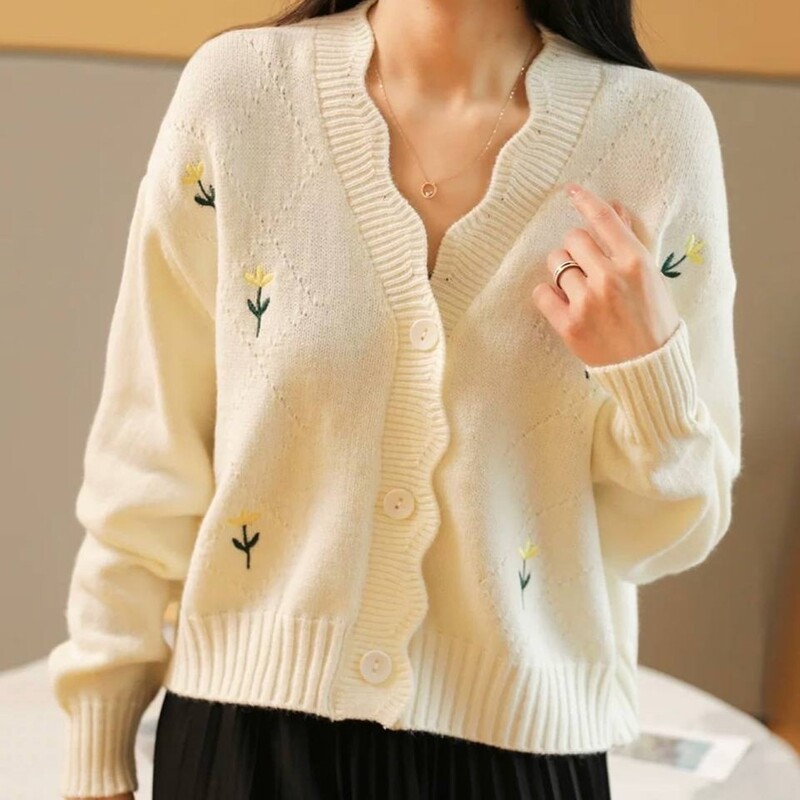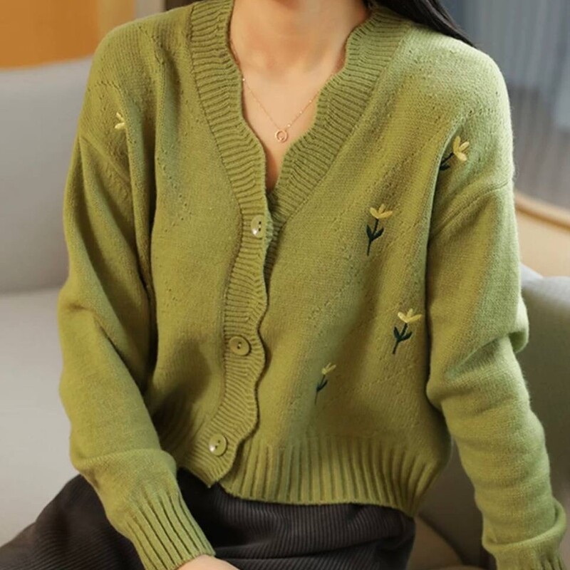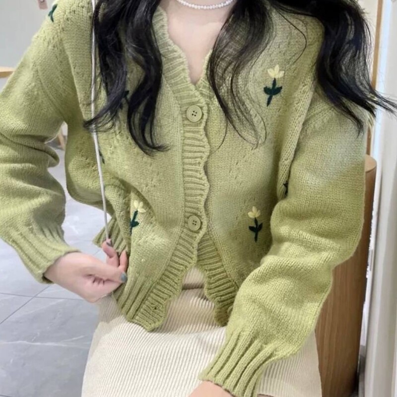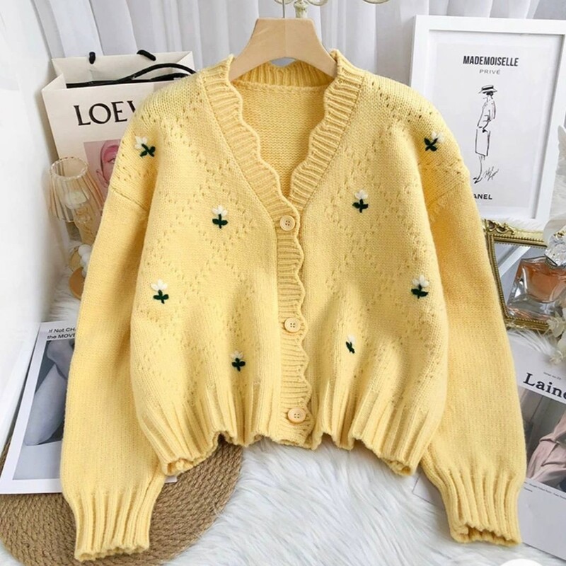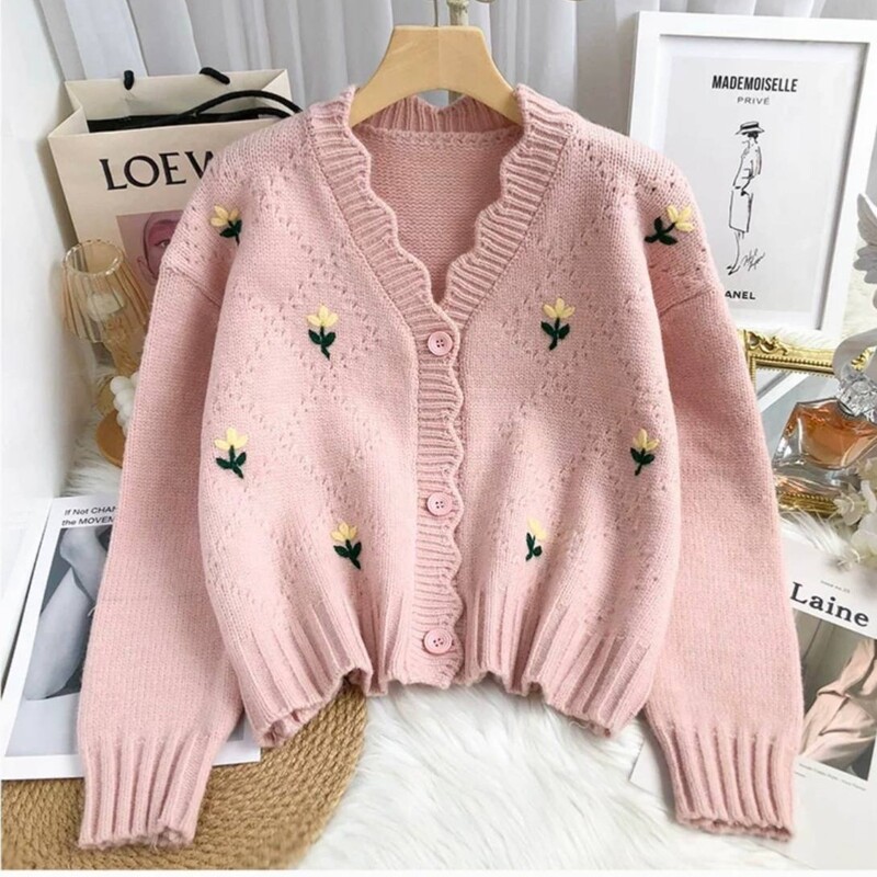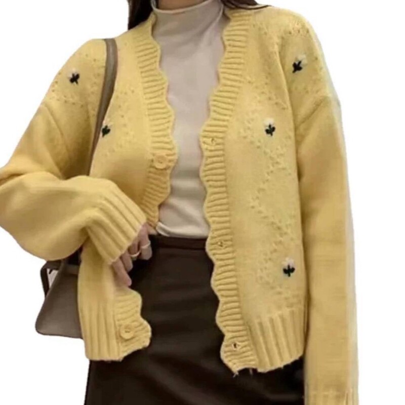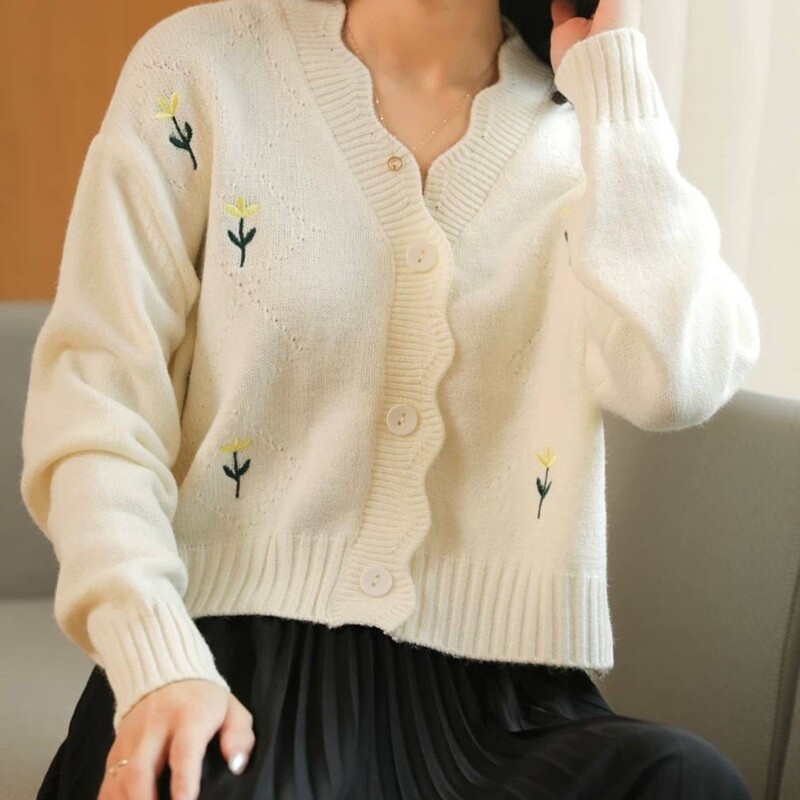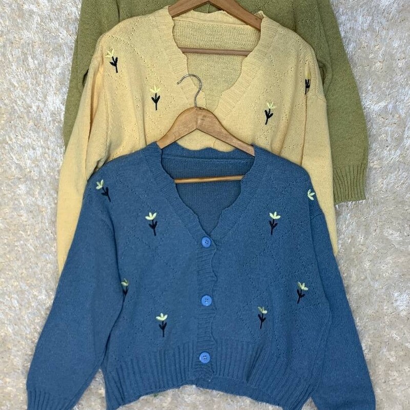 کراپ بافت گلدار خارجی ژاکت بافت کیوتی