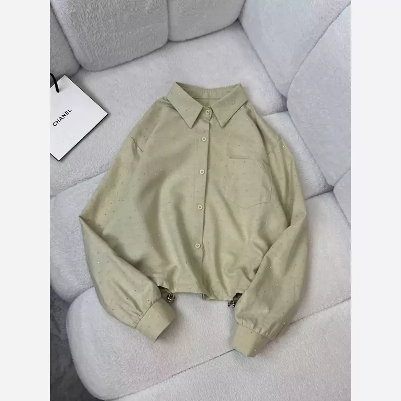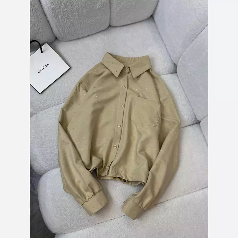 شومیز زنانه خارجی کراپی نگینی گت دار