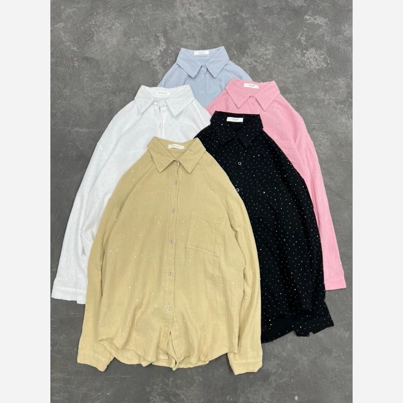 شومیز زنانه خارجی نگین دار پنبه ای