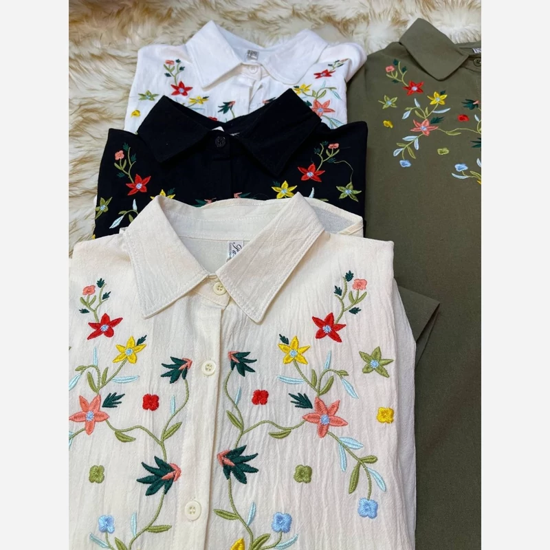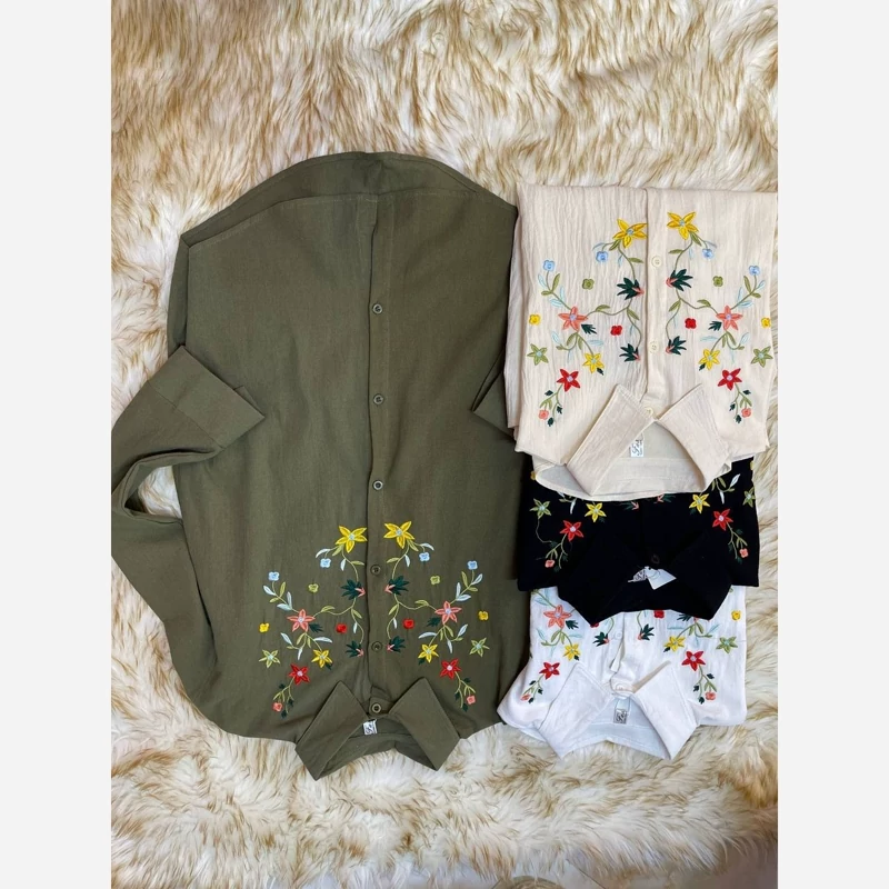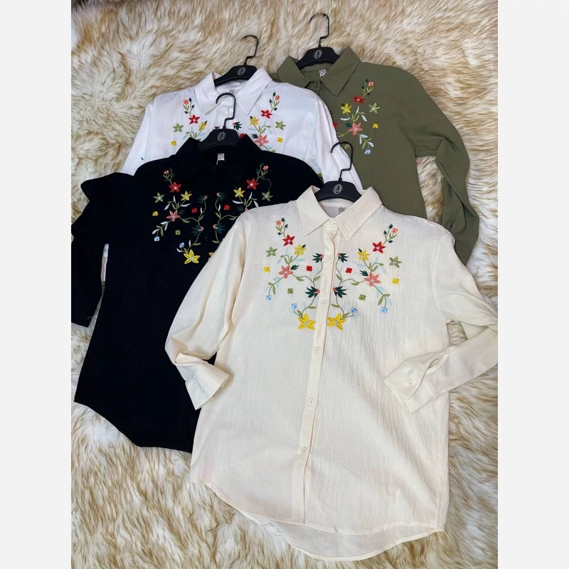 شومیز گلدوزی 😍 👗جنس کریشه نخی کیفیت عالی 👗 قد جلو:71 سانتی متر 🌷قدپشت :75سانتی متر دور سینه :110 سانتی متر 🌀سایزبندی🍃فری سایزمناسب سایز (36تا 44)🍂 🎀رنگبندی:4 رنگ🎀