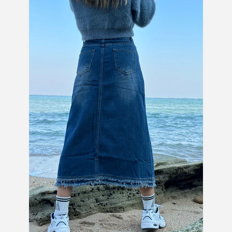 دامن جین خارجی پایین ریش زنانه دخترانه