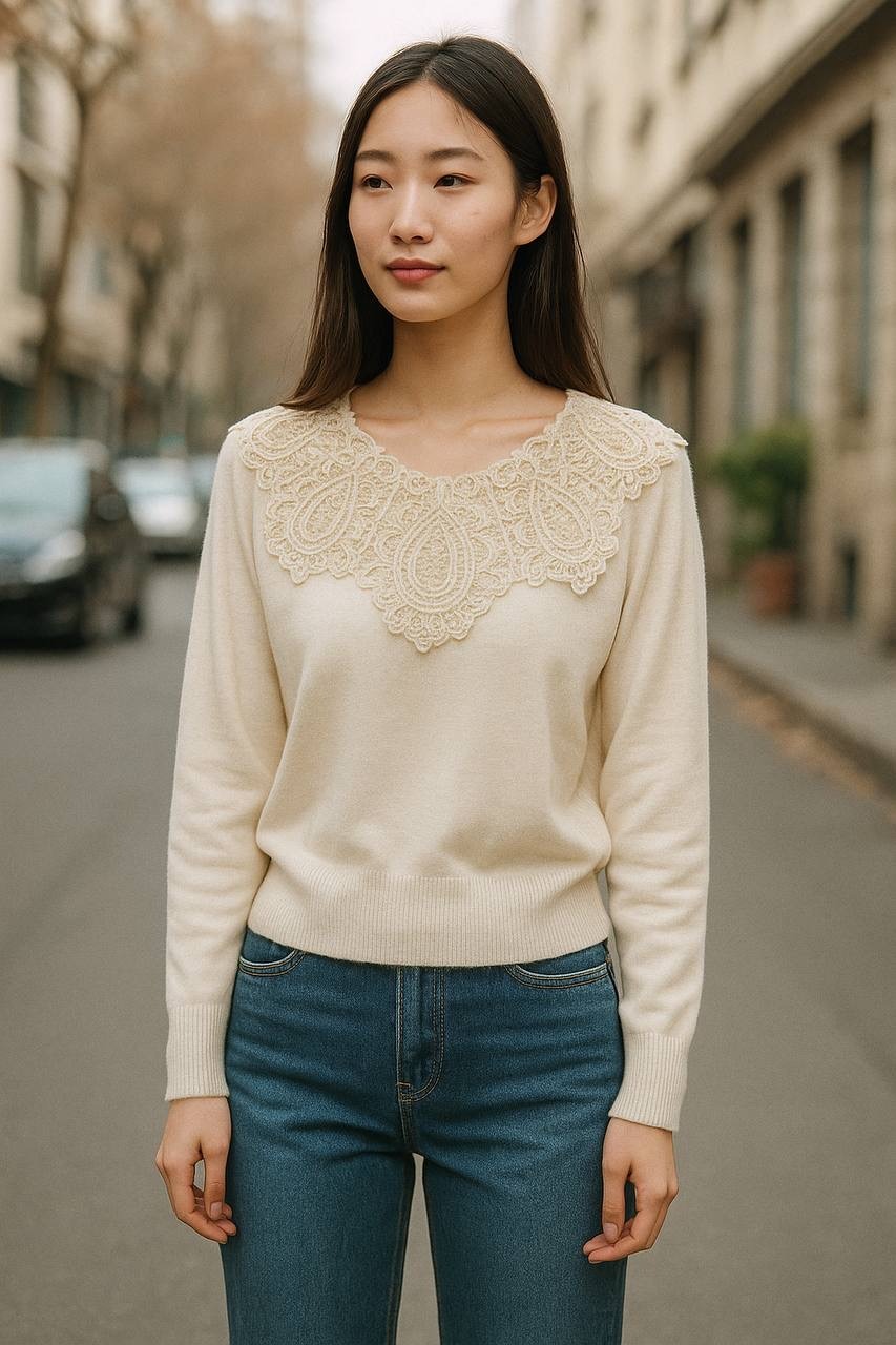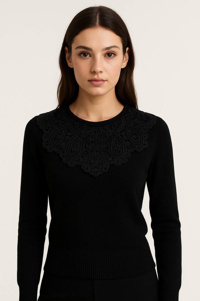 بلوز بافت زنانه خارجی یقه گیپور ۴۴۳۰
