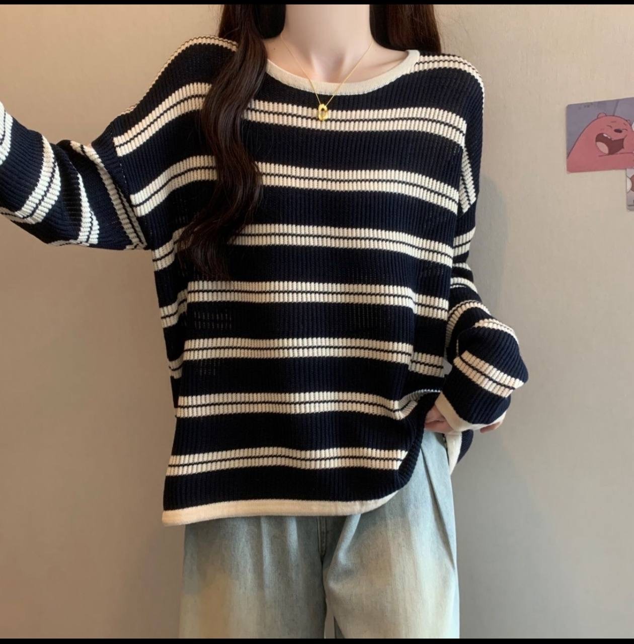 بلوز بافت زنانه خارجی راه راه ۴۴۴۱