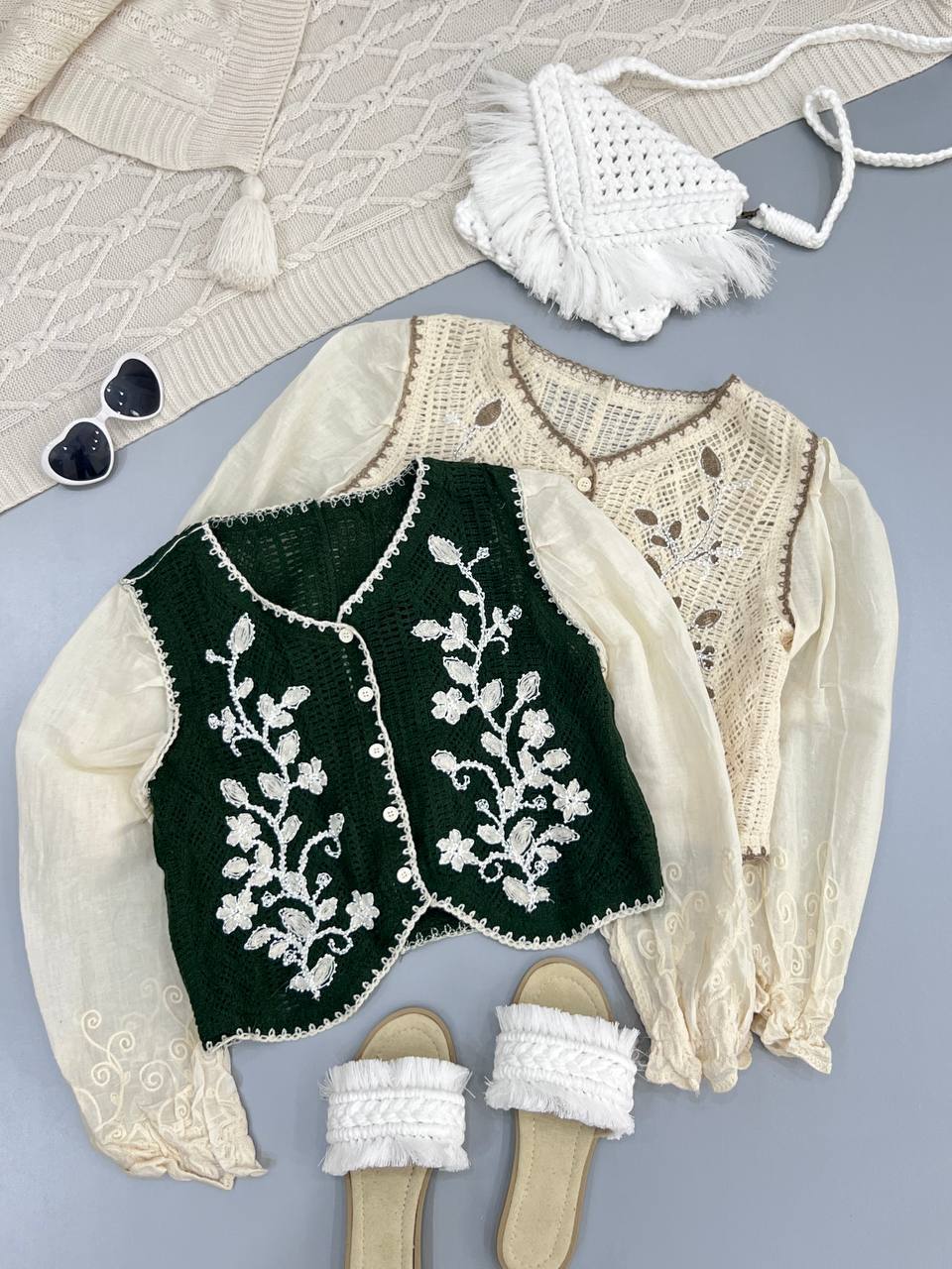 شومیز زنانه خارجی بافت قلاب دوزی مرواریدی ۵۳۶۸