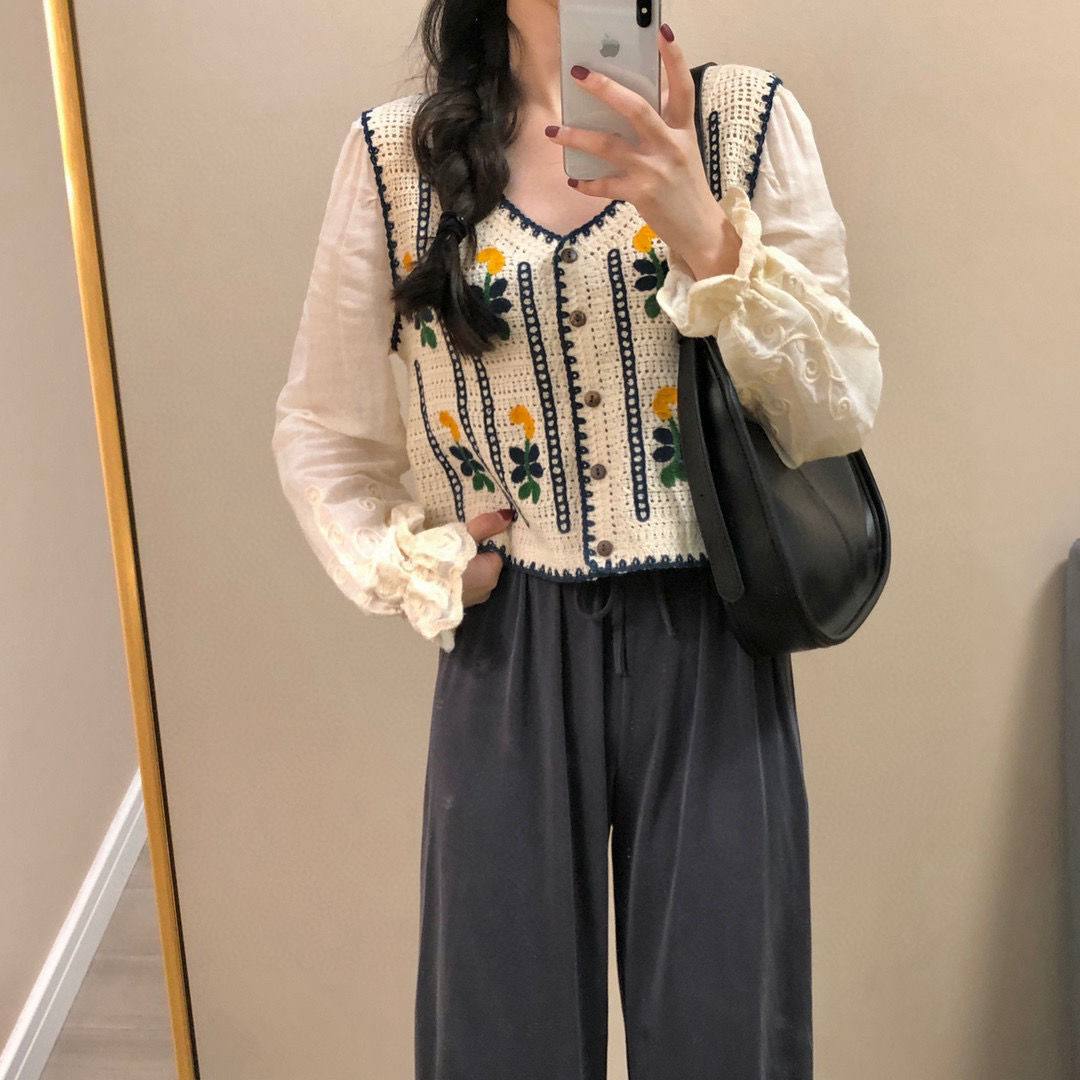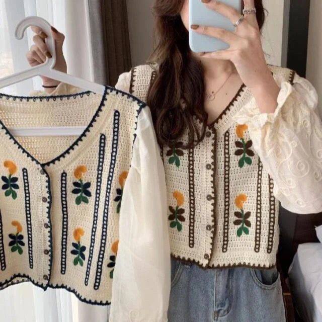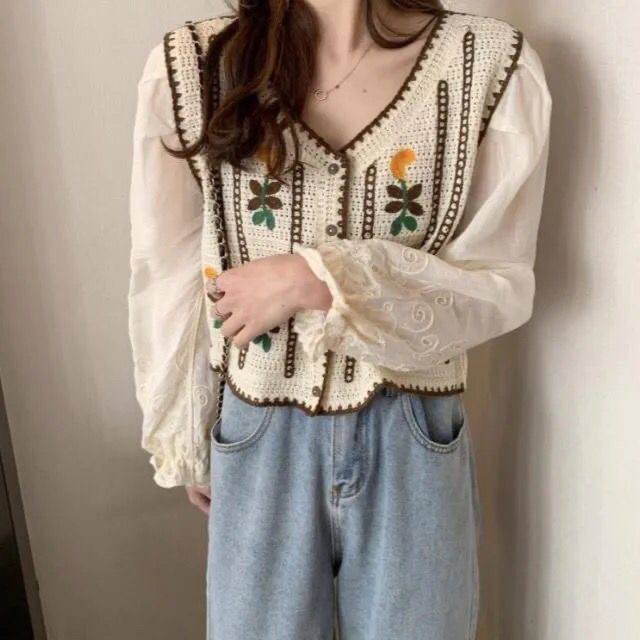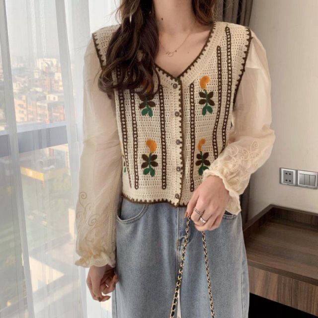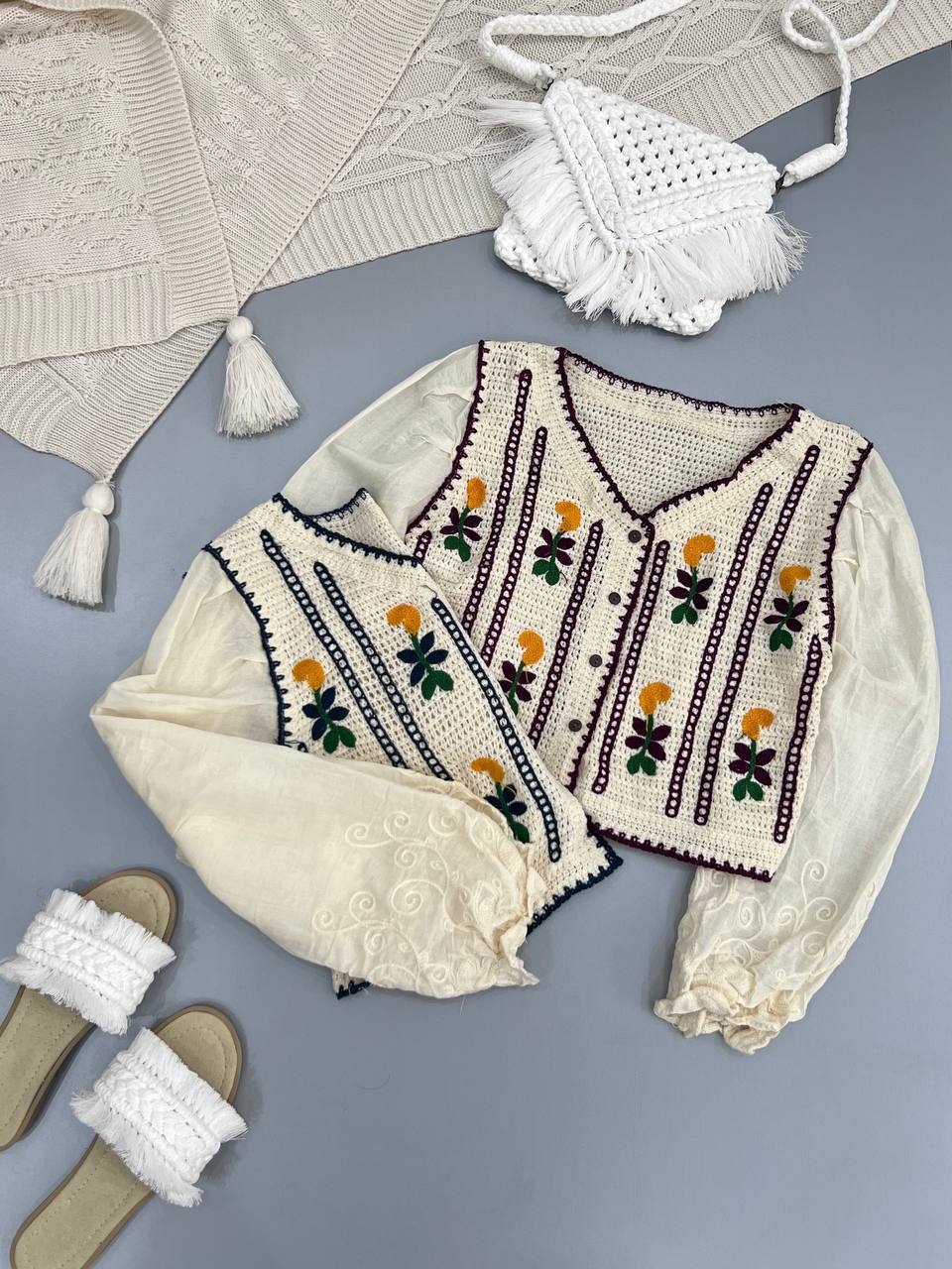 شومیز زنانه خارجی بافت قلاب دوزی مرواریدی۵۳۶۸